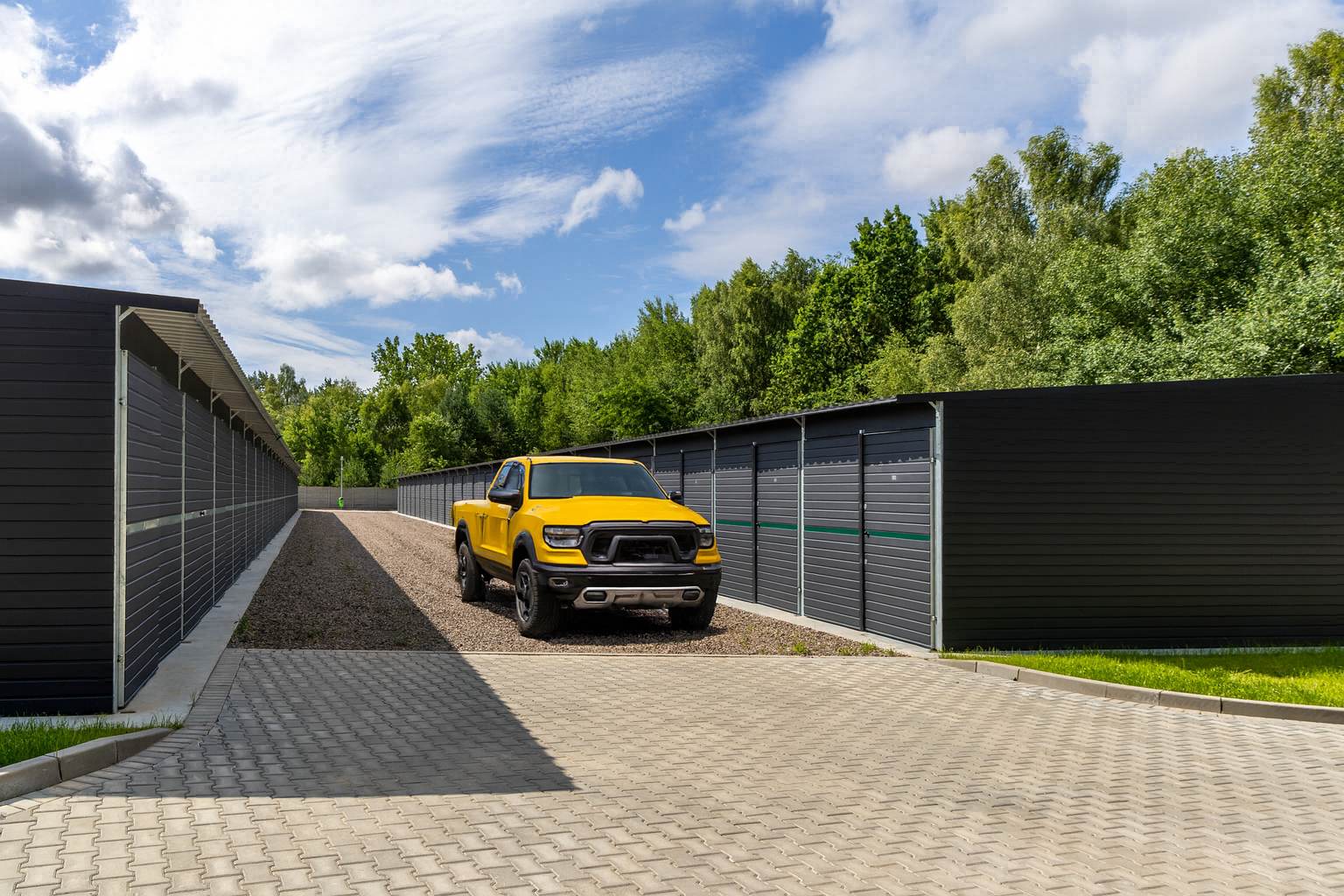 BOKSY I GARAŻENowoczesne garaże i boksy z dostępem 24/7, prądem, oświetleniem i monitoringiem – gotowe od ręki.